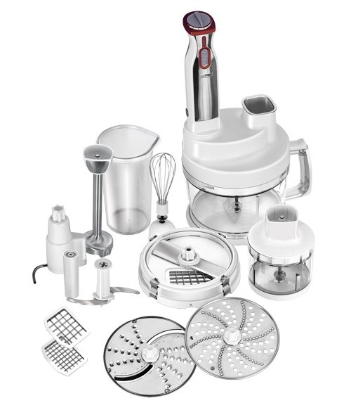 Robot kuchenny MRK-05 to wielofunkcyjne urządzenie w optymalnym rozmiarze, które w praktyczny sposób może ułatwić i przyspieszyć zrobienie różnorodnych dań. Jego przystawka do krojenia warzyw i owoców w kostkę pozwoli przygotować sałatkę jarzynową o wiele szybciej niż przy użyciu tradycyjnego noża. Ważnym elementem całego zestawu jest tarcza do ucierania ziemniaków, która umożliwi błyskawicznie przygotować takie dania jak np. placki ziemniaczane.