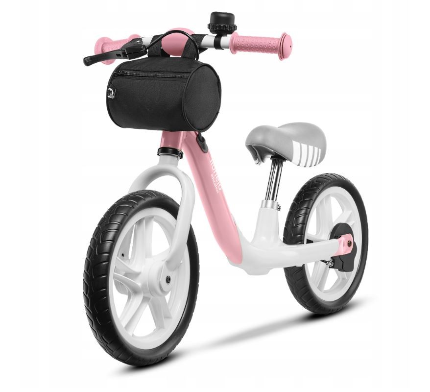 - Rowerek Arie został wyposażony w zapinaną na zamek materiałową torbe na przodzie rowerka dzięki temu schowkowi maluszek może zawsze zabrać ze sobą swoje ulubione zabawki.
