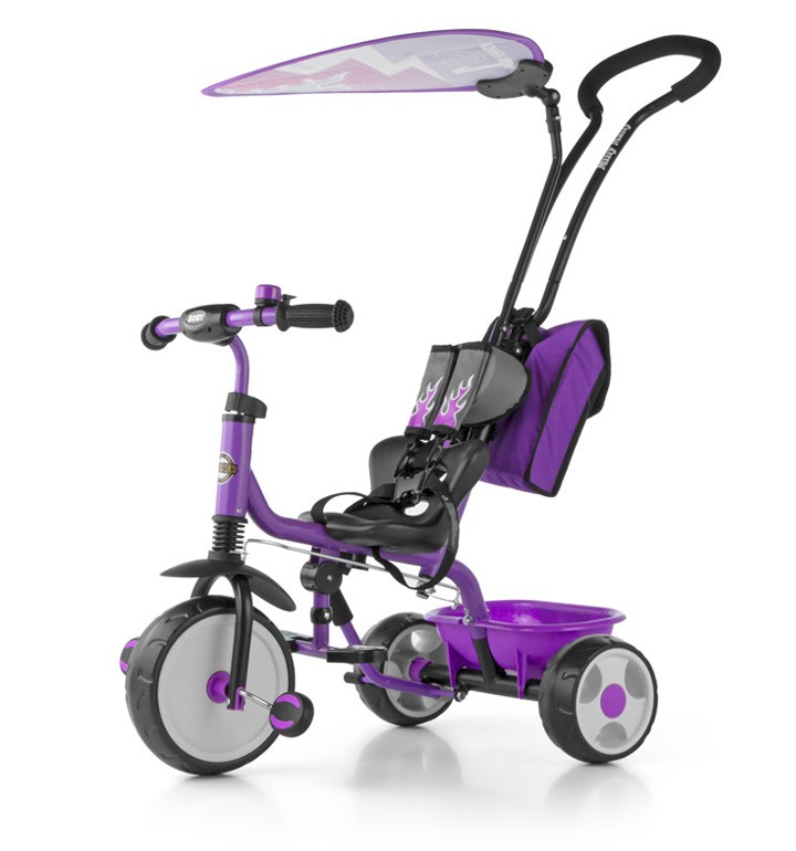 Wygodne siedzisko oraz miękkie oparcie zapewniają maksymalny komfort jazdy. Pięciopunktowe pasy utrzymują stabilność dziecka w siedzisku. Rowerek posiada prosty mechanizm działający na zasadzie sprzęgła. Po odłączeniu napędu pedałki mogą obracać się niezależne od ruchu przedniego koła, co przydatne jest podczas prowadzenia rowerka przez rodzica (ruch pedałków nie jest wymuszany przez ruch koła!).Daszek chroni naszą pociechę przed słońcem, a plecak pozwala na zabranie picia w upalne dni.