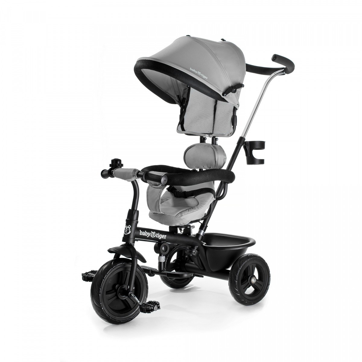 Uchwyt na kubek oraz kosz na zakupy pozwolą zabrać Tobie wszelkie niezbędne drobiazgi na spacer.
