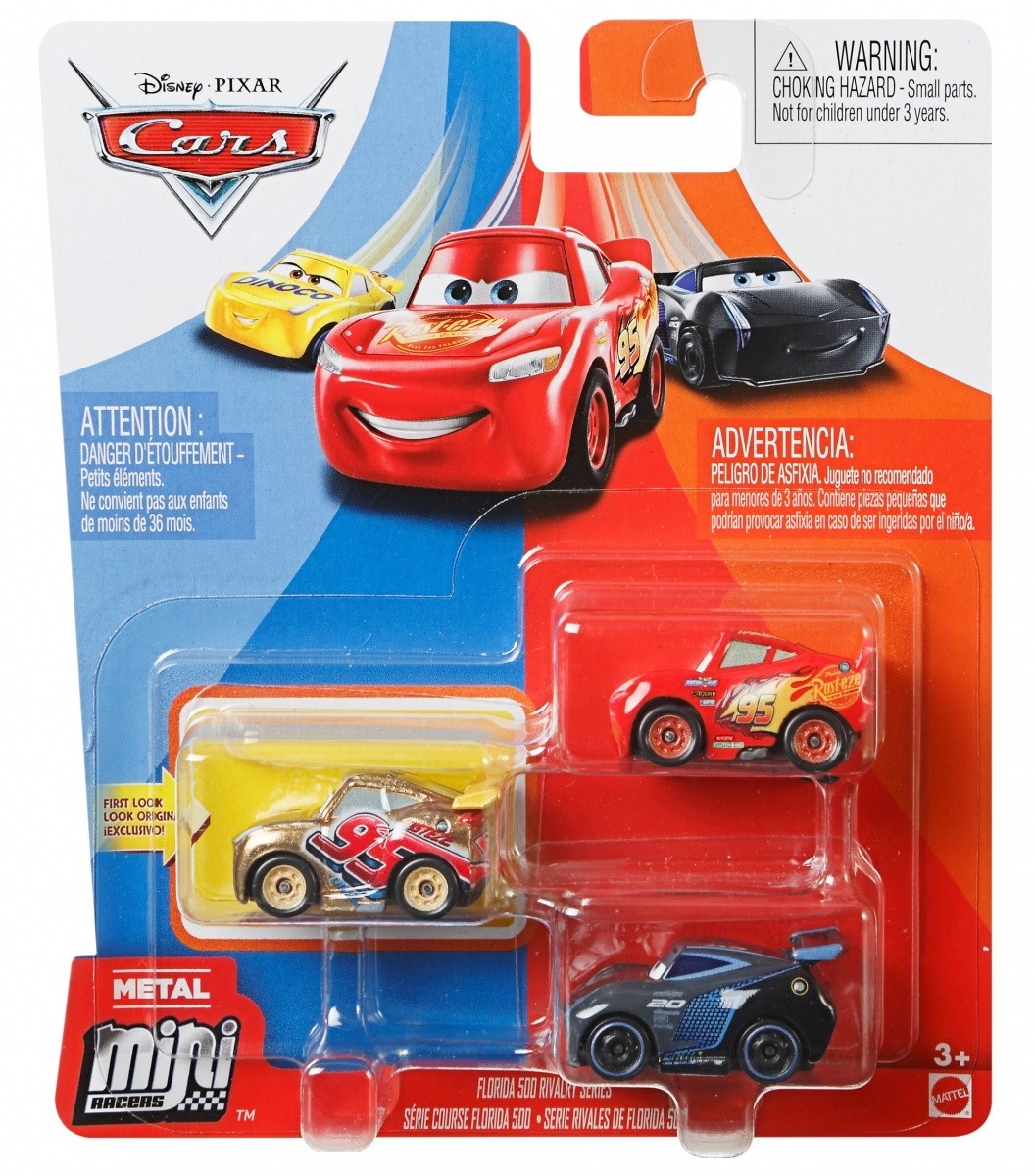 Te małe samochodziki znane z filmów Disney Pixar Auta są idealne do zabawy i zabierania ze sobą! Każdy tematyczny 3-pak zawiera trzy pojazdy, w tym jeden wyjątkowy. Ich kompaktowy rozmiar pozwala na odgrywanie filmowych scenek zarówno w domu, jak i w podróży! Zbierz wszystkie zestawy metalowych minipojazdów ze wszystkich trzech filmów, by odtworzyć ulubione scenki z Chłodnicy Górskiej, Błotoryi oraz wyścigów terenowych. Każdy 3-pak jest sprzedawany oddzielnie w zależności od dostępności. Kolory i elementy dekoracyjne mogą się różnić.