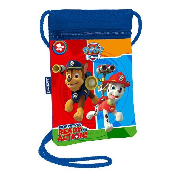 Saszetka na sznurku zasuwana zamkiem błyskawicznym, wykonana z wysokiej jakości materiału. Lekka i wygodna, można nosić ją zawieszoną na szyi lub na ramieniu. Idealna na spacer, pomieści najpotrzebniejsze drobiazgi jak klucze czy telefon. Ozdobiona motywem graficznym z wizerunkiem bohaterów bajki Psi Patrol.