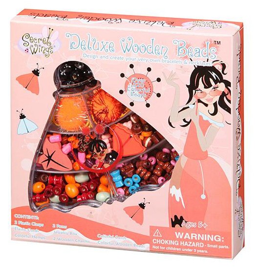 Deluxe Wooden Beads to zestaw wielu kolorowych drewnianych koralików i ozdób wraz z akcesoriami. Należy on do serii Secret Wings, która robi furorę wśród dzieci na całym świecie, z powodu postaci pięciu wróżek: Tansy, Poppy, Ivy, Honey i Lily.