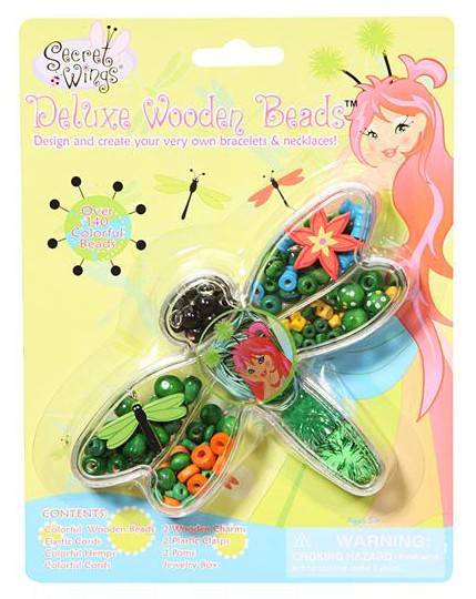 Deluxe Wooden Beads to zestaw wielu kolorowych drewnianych koralików i ozdób wraz z akcesoriami w blisterku-ważce. Należy on do serii Secret Wings, która robi furorę wśród dzieci na całym świecie, z powodu postaci pięciu wróżek: Tansy, Poppy, Ivy, Honey i Lily.