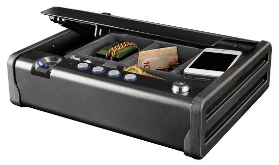 Kompaktowy sejf doskonały do przechowywania małych kosztowności i elektroniki. Czytnik biometryczny, bezgłośny system wprowadzania kombinacji przycisków oraz siłownik gazowy otwierający sejf gwarantują szybki i dyskretny dostęp do jego wnętrza. Klucz ma funkcję nadrzędną i pozwala na dostęp do zawartości sejfu nawet w przypadku utracenia kombinacji. Wygodna tacka ułatwia organizację zawartości.