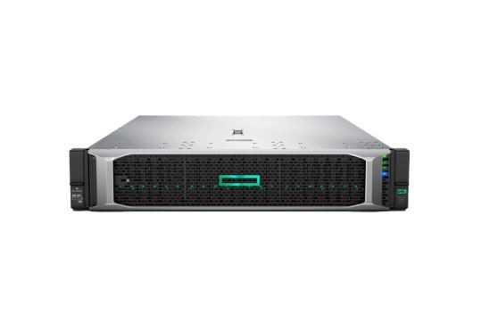 Serwer HPE ProLiant DL380 Gen10 z jednym procesorem Intel Xeon Silver 4210R, podwójną pamięcią 32 GB, kontrolerem pamięci P408i-a z 2 MB pamięci podręcznej i inteligentną baterią pamięci, karta rozszerzeń SAS 12 Gb z kablami, 24 wnęki na dyski kompaktowe, jedna 4-portowy adapter HP6 Ethernet 1Gb 1 366 FLR, jeden zestaw szyny SFF Easy Install, jeden zestaw ramienia do prowadzenia kabli, jeden zasilacz 800 W i gwarancja 3/3/3.