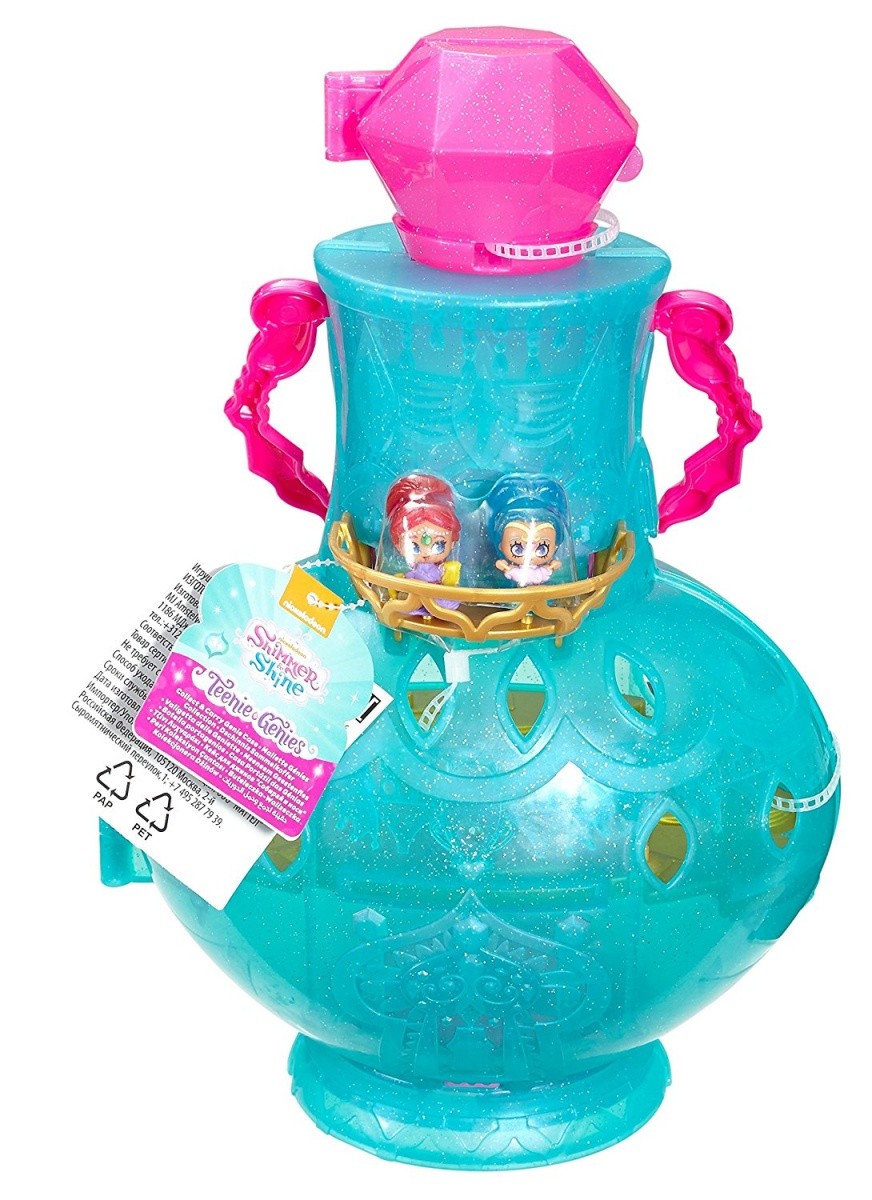 Mówisz i masz! Urocza buteleczka-walizeczka zawiera dwa wyjątkowe dżiny (Shimmer z serii Taneczna impreza i Shine z serii Magiczny targ) oraz miejsce na kolekcję nawet 40 dżinów!