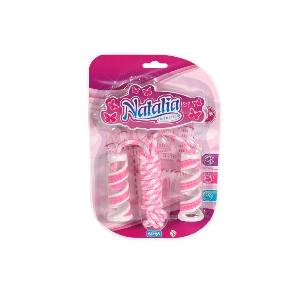 Skakanka w słodkich kolorach (różowy + biały) wykonana jest z mocnego i jednocześnie lekkiego sznurka.