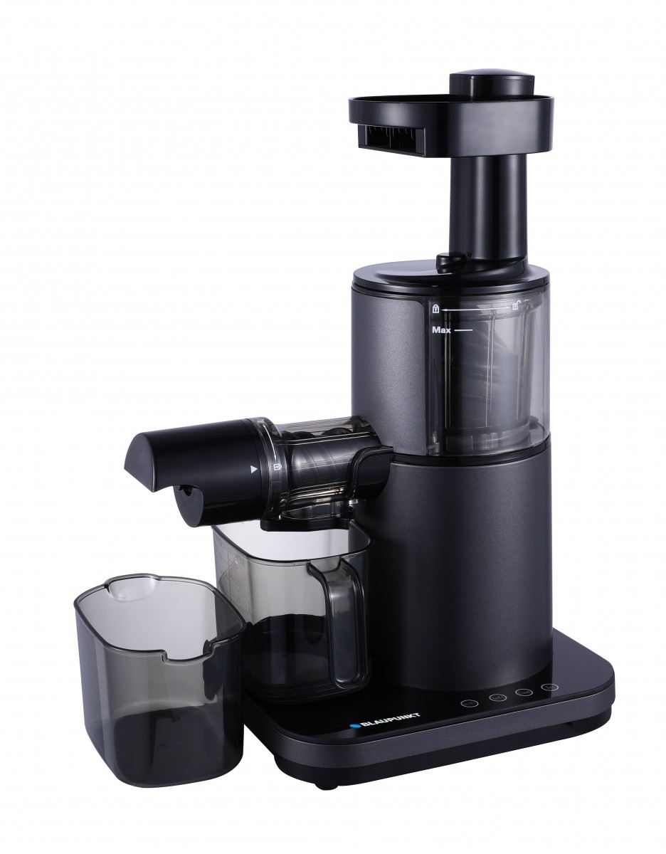 Dotykowy panel sterowania, 4 tryby pracy (normalny, wolny, bieg wsteczny, czyszczenie), blokada kapania soku, a także niezwykle ciche działanie (poniżej 65 dB) pozwalają na komfortowe korzystanie z urządzenia.