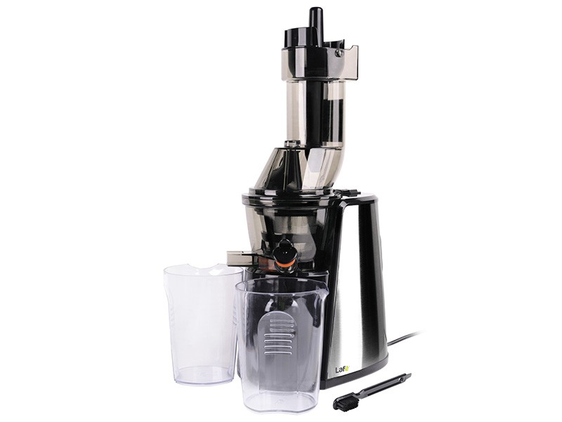 Wyciskarka wolnoobrotowa Lafe SWP-003 to urządzenie, które efektywnie wyciska sok z warzyw, owoców, a także ziół. Możesz spokojnie wkładać do podajnika całe owoce i warzywa, a sokowirówka na bieżąco będzie oddzielać wartościowy płyn od wyciśniętych skórek, miąższu czy też pestek, odprowadzanych dedykowanym podajnikiem do oddzielnego zbiornika.
