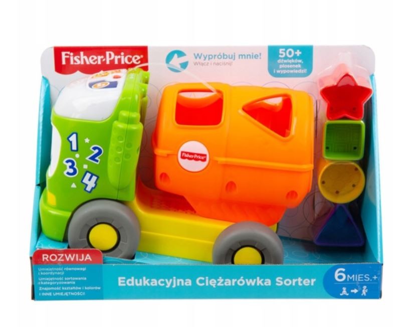 Zapewnij swojemu maluszkowi mnóstwo zabawy i nauki z Edukacyjną ciężarówką od Fisher-Price! Ten zabawkowy pojazd-sorter umili czas Twojemu dziecku, wzbogacając jego zabawy o dopasowywanie kształtów przy akompaniamencie ponad 50 dźwięków, edukacyjnych piosenek i wypowiedzi. Elementy zabawki są idealnie dopasowane do małych rączek, łatwe do chwytania i manipulowania. Gdy dziecko podrośnie, może ciągnąć pojazd na sznureczku, a pierwsze kroki zostaną nagrodzone ekscytującymi, wielokolorowymi światełkami, muzyką i dźwiękami auta!