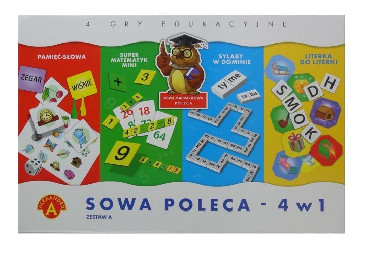 Strona główna Gry/Puzzle gry Sowa mądra głowa poleca 4w1 zestaw A Cena Netto: 39,59 zł. error_outline Produkt chwilowo niedostępny. Opis Alexander Sowa mądra głowa poleca 4w1 zestaw A.