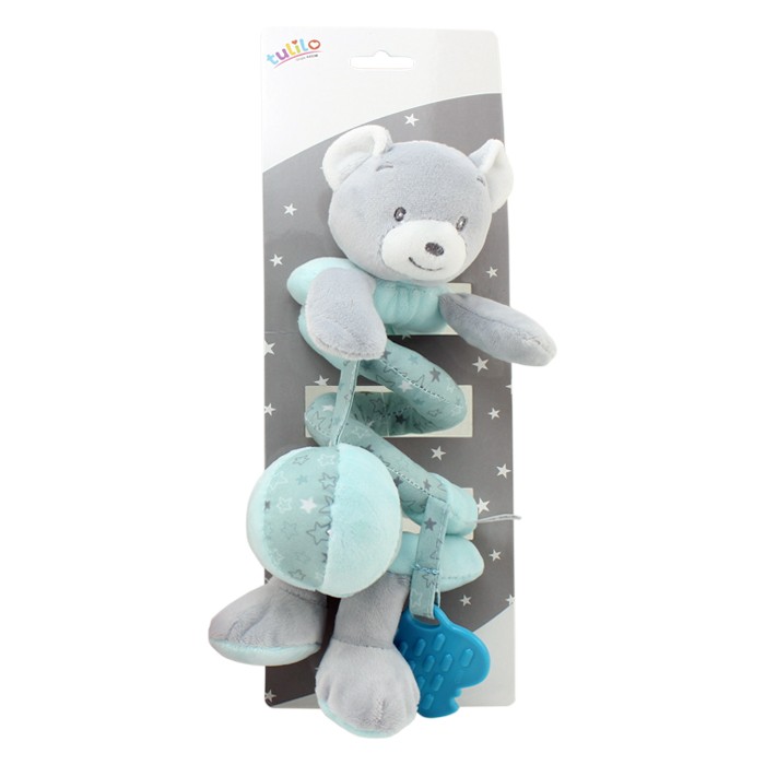 New Baby Miś sprężynka pluszowa z dodatkami to bardzo miła przytulanka w delikatnym miętowym kolorze. Zabawka ma uspokajający wpływ na małe dzieci i doskonale się sprawdza jako pomoc przy usypianiu. Miś wykonany jest z miłych, delikatnych materiałów i jest bezpieczny dla dzieci od pierwszych dni życia.