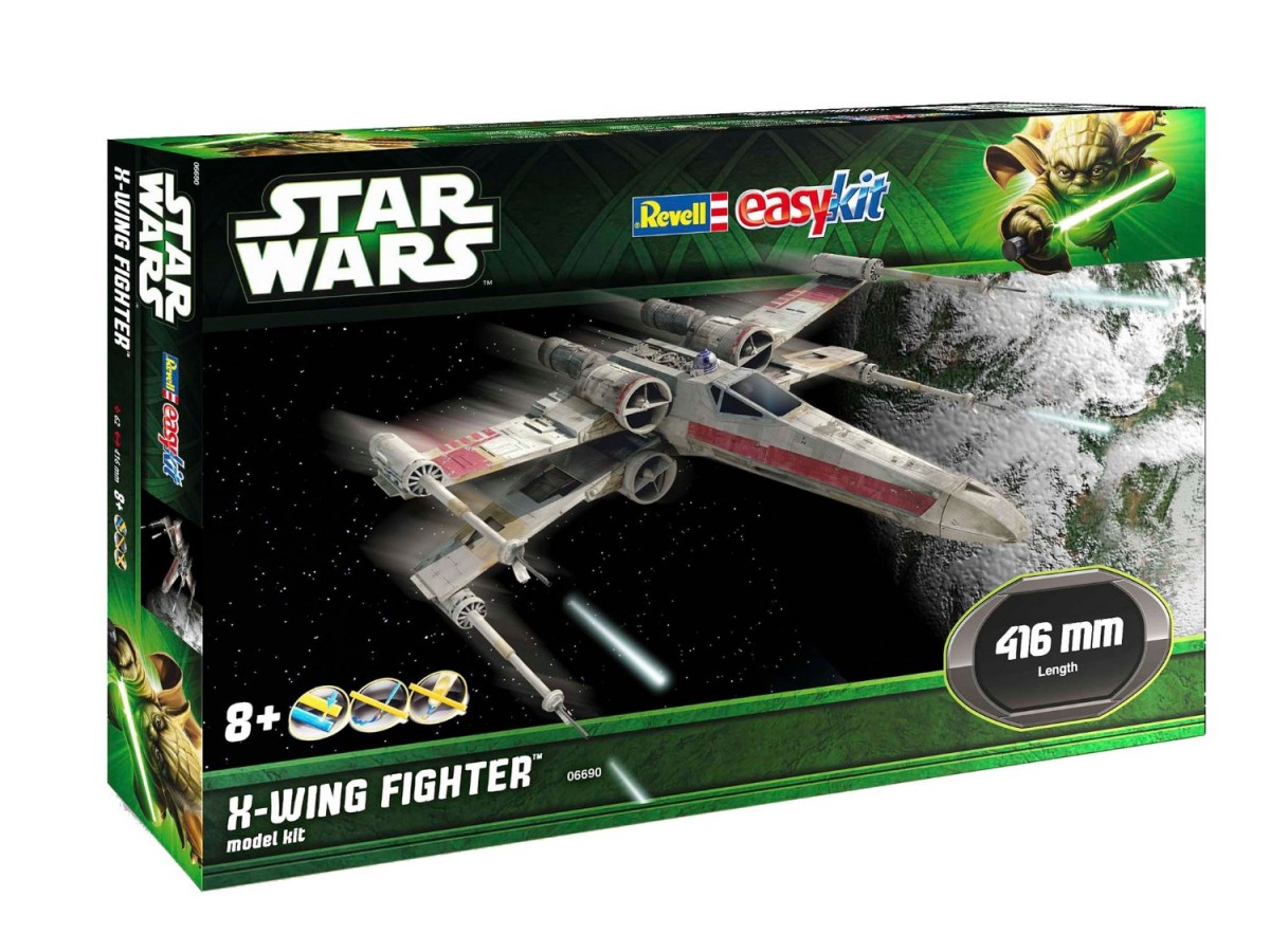 Zestaw zawiera plastikowy model myśliwca X-Wing Fighter z filmu Star Wars.