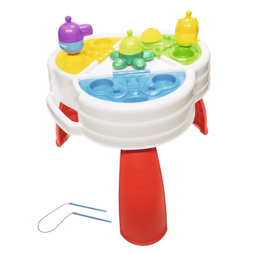 Stolik Pełen Pomysłów marki Lalaboom dostarcza wiele zróżnicowanych wrażeń dotykowych ze względu na różne faktury poszczególnych elementów. Zabawka daje możliwość ćwiczenia różnych ruchów ręki (nakładanie, wciskanie, kręcenie) pod kontrolą wzroku. Pozwala na ćwiczenie wyjmowania (od 10 mż) i wkładania (od 12 mż) przedmiotów do pojemników. Umożliwia zabawę w dopasowywanie kolorów (od 36 mż). Zestaw Lalaboom umożliwia zabawę w chowanie i poszukiwanie klocka, rozwija pojęcie stałości przedmiotu (przeświadczenie, że przedmiot istnieje niezależnie od tego, czy go widzimy; jest to początek rozwoju pamięci, wykształca się między 9 a 12 rż).