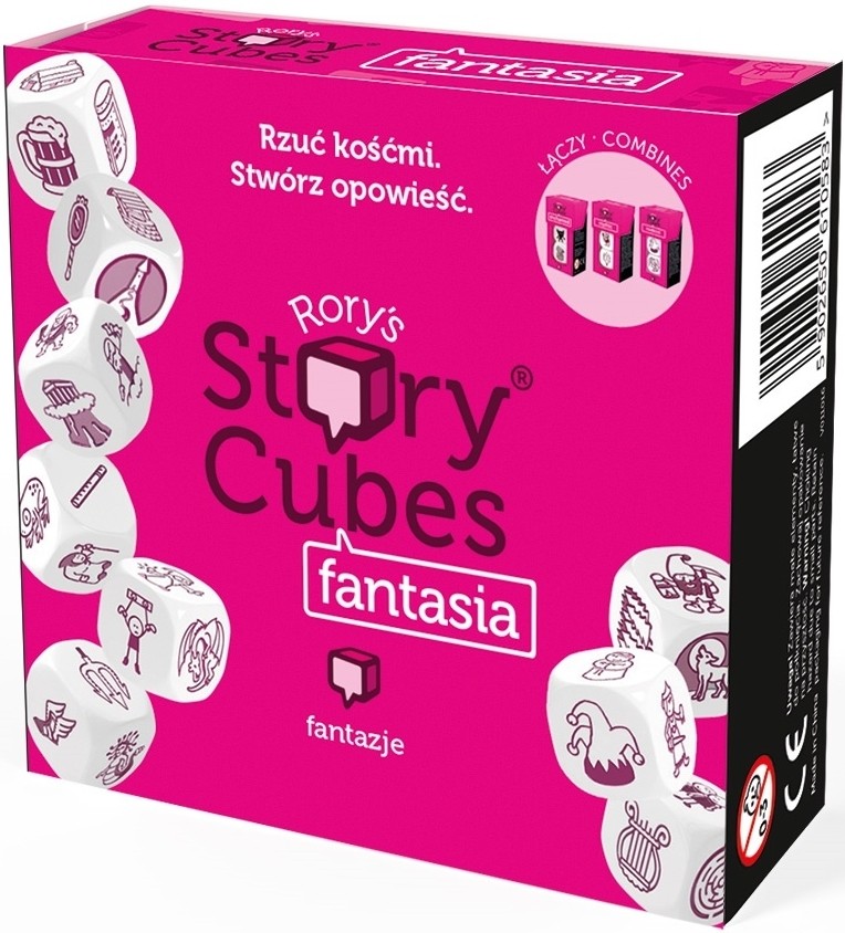 Story Cubes: Fantazje są zestawem w którym odnajdziemy dodatki 3 kostkowe: Baśnie, Mity i Średniowiecze. Posiadają 54 ikonki opisujące większość najważniejszych słów związanych z popularnymi baśniami, grecką i rzymską mitologią oraz średniowieczem i etosem rycerskim.