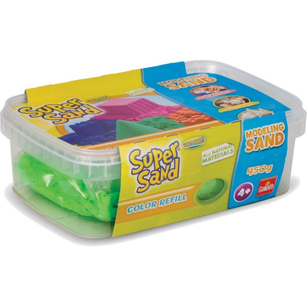 Super Sand przenosi lato i zabawę piaskiem do domu. Super aksamitne w dotyku, suche a jednocześnie antybakteryjne i 100% naturalne, takie jest tworzywo Super Sand. Piasek, który można używać jeszcze raz i jeszcze raz i jeszcze… Zrób babkę z piasku albo zamek z fosą. Dołączone narzędzia i piękne foremki pomogą stworzyć czego dusza zapragnie. Masa Super Sand składa się z naturalnych składników mineralnych. Jeżeli coś się rozsypie poza „piaskownice”, nie ma problemu ponieważ masa ma specjalną strukturę pomagającą w utrzymaniu czystości. Super Sand stymuluje kreatywność dzieci. Daj się ponieść swojej wyobraźni i ciesz się swoimi kreacjami z Super Sand! Dotknij aby poczuć różnice.