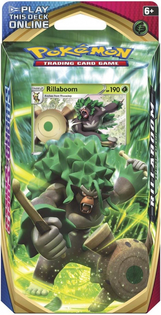 Pokemon TCG: Sword and Shield - Rillaboom Theme Deck zawiera talię zbudowaną z 60 kart metalowy żeton matę do gry pudełko na talię znaczniki instrukcję kartę z kodem do talii online Talia została zaprojektowana specjalnie dla początkujących graczy!