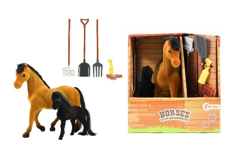 Wspaniały zestaw flokowanych koni od firmy Toy Toys.