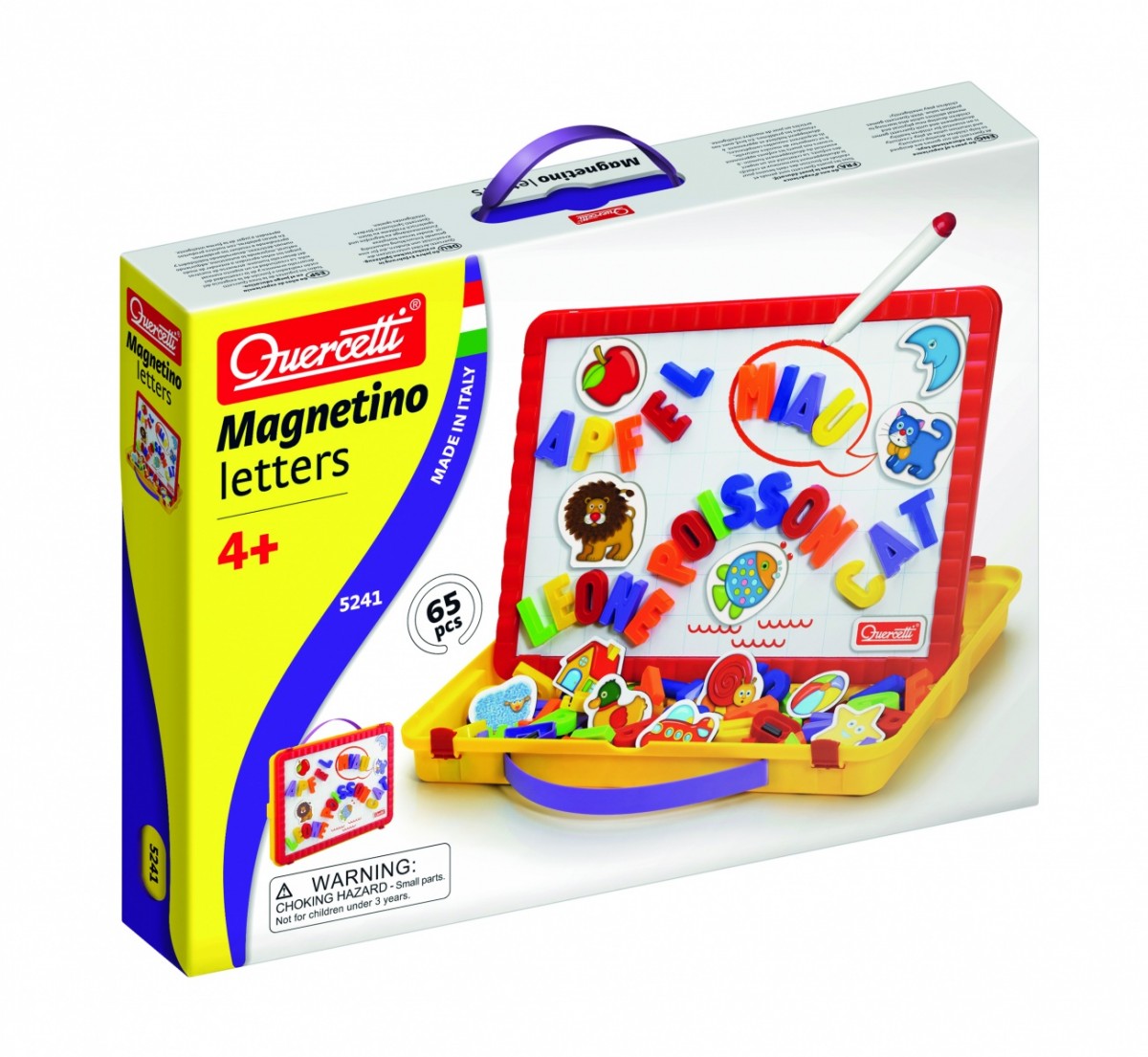 Po tablicy można również pisać zmywalnym pisakiem. Wszystkie elementy można schować w wygodnej walizeczce, która po otwarciu jest koszyczkiem-podstawką dla tablicy.