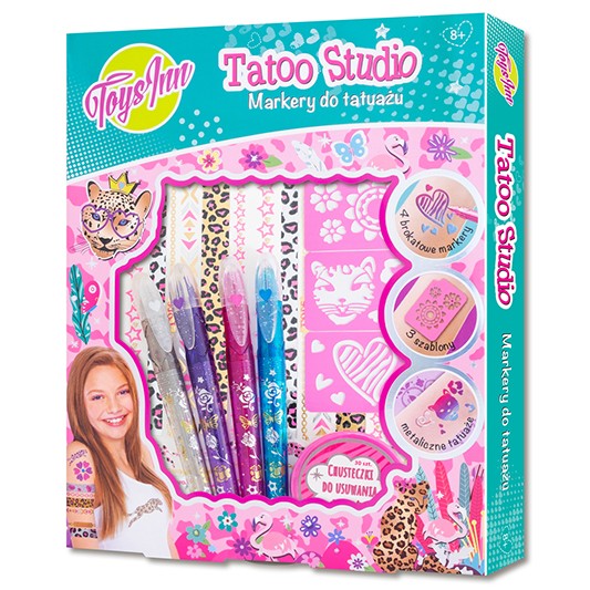 Strona główna Nowości i zapowiedzi Tatoo Studio Pantera Cena Netto: 24,89 zł. error_outline Produkt chwilowo niedostępny. Opis Markery do tatuażu, zestaw zawiera: 4 brokatowe markery do tatuażu, 3 szablony, 1 arkusz metalicznych tatuaży, 30 chusteczek do usuwania tatuaży. Kolory markerów: srebrny, fioletowy, różowy, niebieski.
