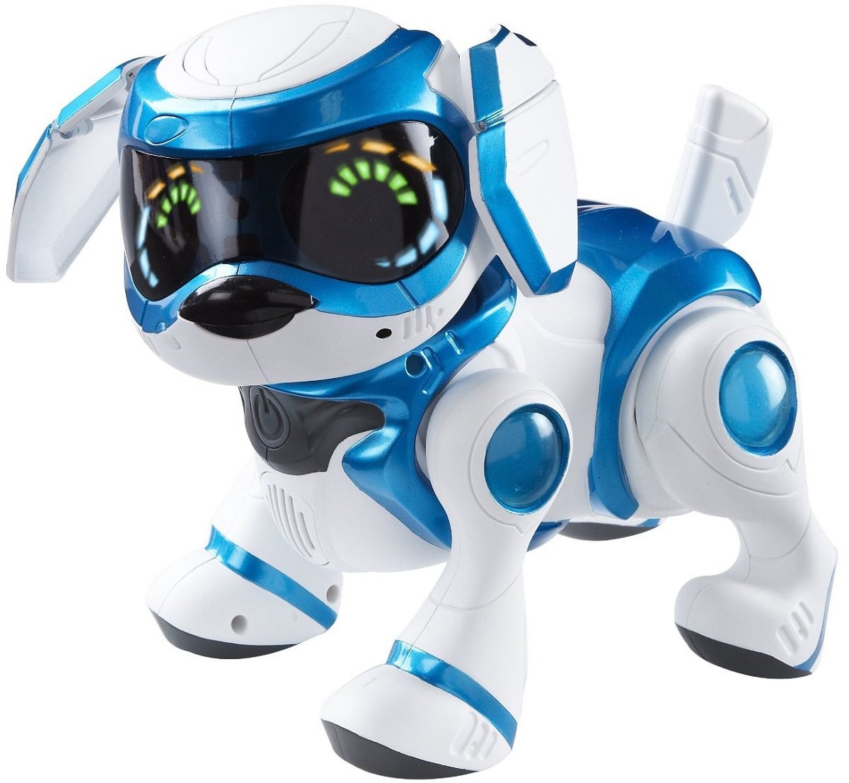 W zestawie znajdziesz: interaktywnego RoboPieska, piłeczkę do zabawy oraz kość do karmienia. Teraz piesek Teksta ma niesamowitą technologię rozpoznawania głosu. Dzięki temu piesek reaguje na głos, słucha i rozumie Twoje komendy. Ponadto, piesek reaguje również na dotyk, gestykulację, dźwięk, a nawet światło. RoboPiesek, chodzi, siada, porusza uszami i głową. Potrafi także szczekać, skomleć i za pomocą ekspresji oczu okazywać uczucia. Zasypia w nocy, płacze, gdy jest pozostawiony bez opieki zbyt długo. Specjalnie dla Ciebie wykona swój popisowy numer, jakim jest salto w tył.