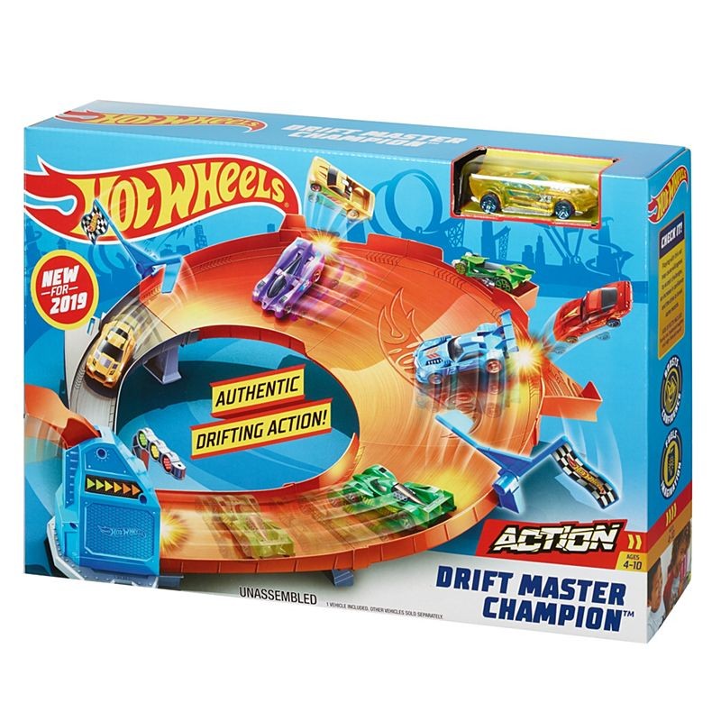 Dzięki zestawom Rywalizacja Mistrzów dzieci mogą zmierzyć się z przyjaciółmi w ciekawych konkurencjach, takich jak wyścigi, drifty i sztuczki kaskaderskie! Mali zawodnicy mogą sprawdzać swoje umiejętności w różnych wyzwaniach, które obejmują okrążenia z driftami czy wyścigi równoległe. Zestaw do driftowania pozwala na odważną jazdę pełną sztuczek wymagających precyzji. Po raz pierwszy w historii przy startowaniu do driftu można wystrzelić pojazd z boku zamiast z przodu! Aby uzyskać dodatkowe punkty, strąć flagi znajdujące się przy torze. Zestaw do wyścigów równoległych to klasyczny wyścig z imponującą strefą startową. Pociągnij dźwignię w górę i puść, aby rozpocząć odliczanie. Kiedy bramki się otwierają, zaczyna się prawdziwa rywalizacja! W zestawach znajduje się wszystko, czego mali mistrzowie potrzebują do wyścigów od razu po otwarciu opakowania jeden pojazd Hot Wheels, pomarańczowe tory oraz specjalne elementy takie jak wyrzutnie czy zakręty. Można je łączyć z innymi zestawami torów Hot Wheels (sprzedawane oddzielnie) zbuduj własny spektakularny tor! Sprzedawane oddzielnie w zależności od dostępności.