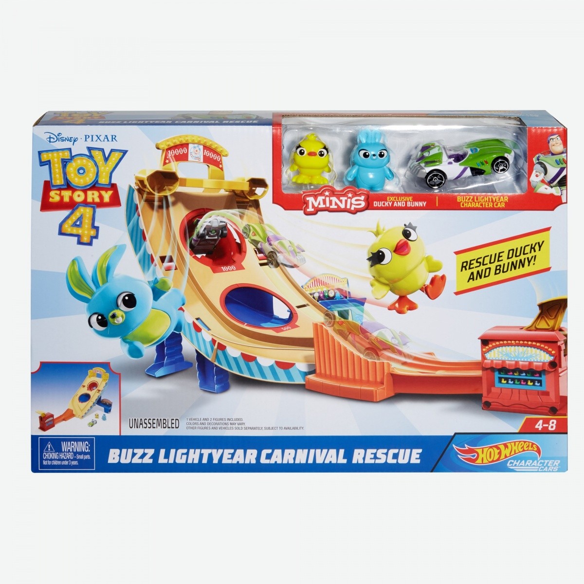 Pomóż Buzzowi Astralowi - w zestawie jako samochodzik Hot Wheels - uwolnić jego przyjaciół Kwaku i Bunia. Zestaw do zabawy Hot Wheels inspirowany filmem Toy Story 4. Odgrywaj ekscytujące filmowe przygody, wcielaj się w ulubionych bohaterów i baw się odjazdowo!