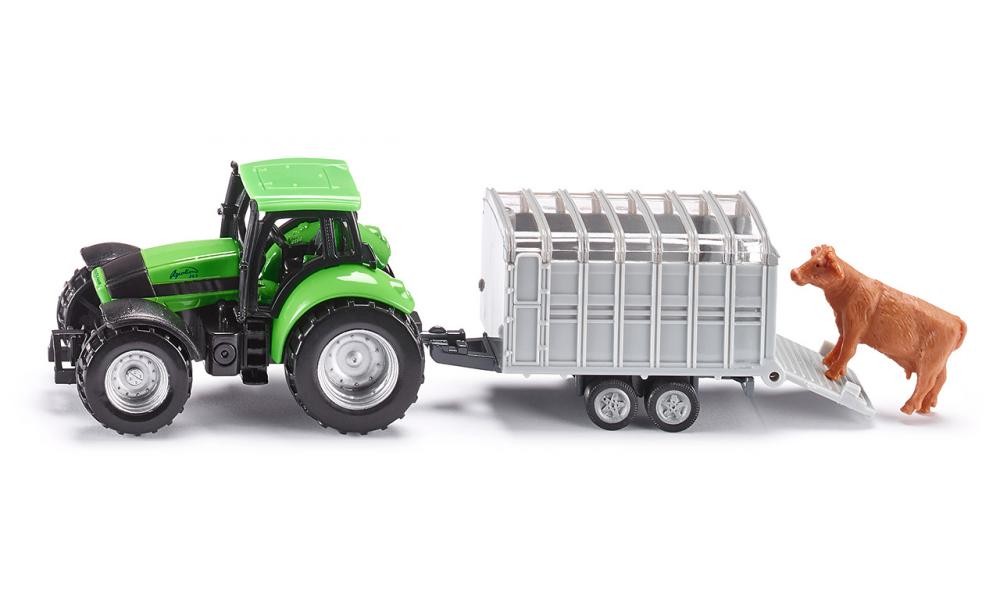 Otwierane tylne drzwi, specjalne otwory boczne i gumowe opony umożliwiają cichy i bezpieczny przewóz po różnych powierzchniach. Zestaw zawiera wykonaną z twardej gumy figurkę bydła. Doskonała zabawa dla małych farmerów i atrakcyjny model kolekcjonerski.