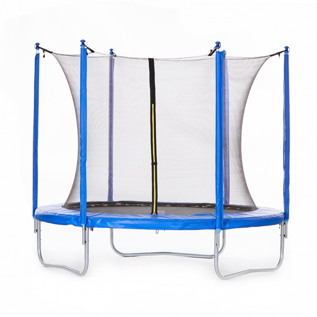 - Nogi trzymające siatkę posiadają kołnierze z grubej gąbki co dodatkowo podnosi standard bezpieczeństwa osób korzystających z trampoliny.