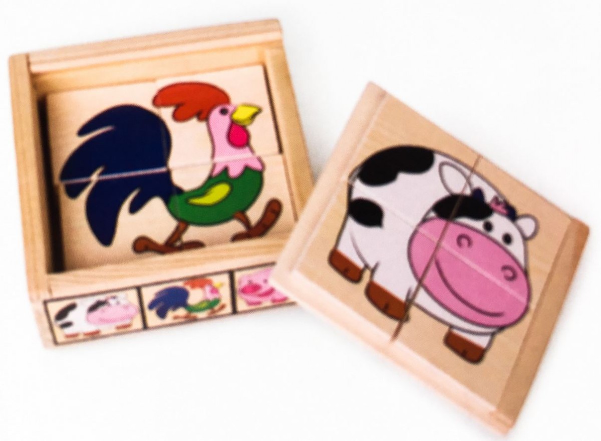 - Puzzle drewniane w pudełku z motywem Wiejskich Zwierzątek marki TOP BRIGHT.
