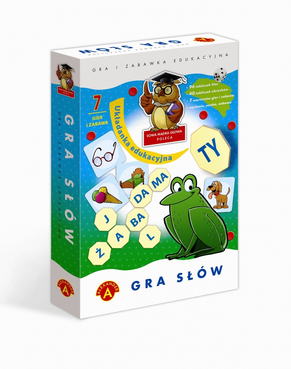 W zabawie dla najmłodszych, dzieci układają litery do wybranego obrazka, tak by utworzyć jego nazwę. Gry z udziałem liter i obrazków są dla dzieci treningiem spostrzegawczości, koncentracji i refleksu. Gry z tabliczkami literowymi i kostką, to gry słowne dla starszych dzieci i dorosłych. Ta grupa gier, to emocjonująca zabawa, w której gracze wzbogacają swoje słownictwo, doskonalą umiejętności poprawnej pisowni, ćwiczą koncentrację i myślenie.