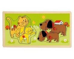 - Dziecko próbuje dopasować 2 elementy, proste puzzle uczące dzieci kojarzenia oraz nazywania zwierząt