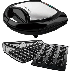Opiekacz 3 w 1 Scarlett o mocy 650 W do kanapek, gofrów i orzechów, pozwoli Ci szybko przygotować pyszne śniadanie i przekąski dla całej rodziny. Zdejmowalne płyty z powłoką nieprzywierajacą ułatwią czyszczenie opiekacza.