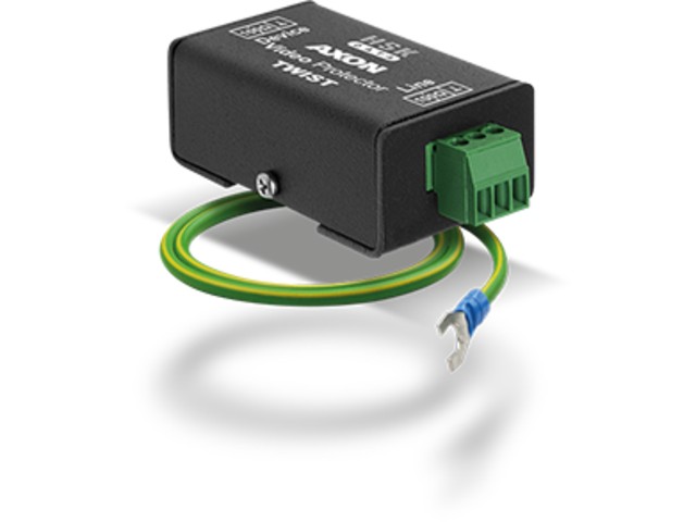 AXON Video Protector Twist jest rozbudowanym urządzeniem ochronnym zawierającym dwustopniowe zabezpieczenie. Pierwszy stopień wykorzystuje wysokoprądowe elementy gazowe, ogranicza przepięcia pojawiające się pomiędzy linią transmisyjną a PE i odprowadza ładunek zakłócający do ziemi. Stopień drugi zawiera szybkie elementy półprzewodnikowe, które eliminują przepięcia mogące wystąpić pomiędzy przewodami w linii transmisyjnej.