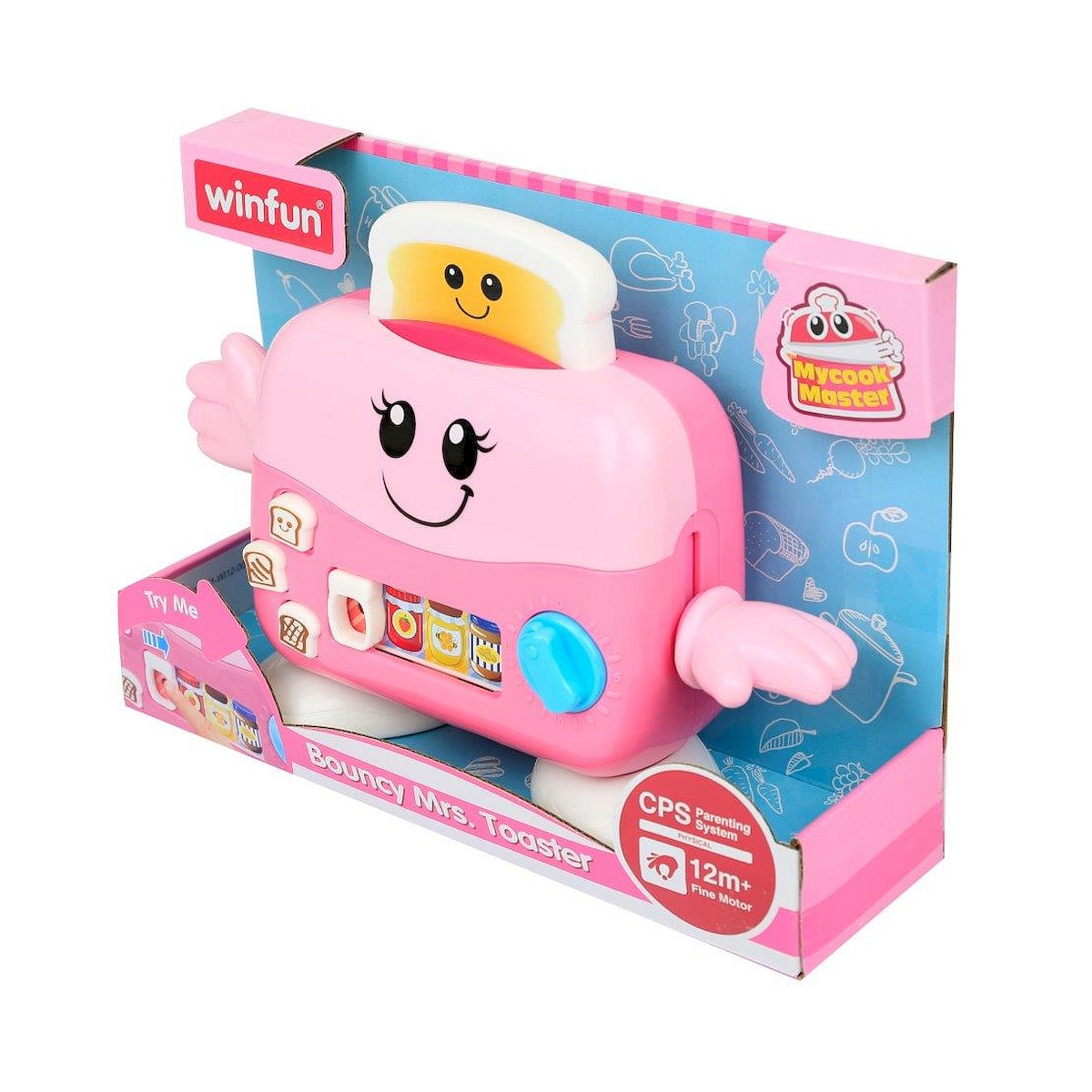 Wesoły Toster to zabawka z serii Mały Kucharz Zdrowy Start. Zabawki te zachęcają do wyrobienia nawyków zdrowego odżywiania. Zapoznają z piramidą zdrowego żywienia przedstawioną graficznie na opakowaniu w atrakcyjny dla dziecka sposób. Poza tym są przeznaczone do zabaw w gotowanie i przygotowywanie potraw. Zabawki mówią po polsku.