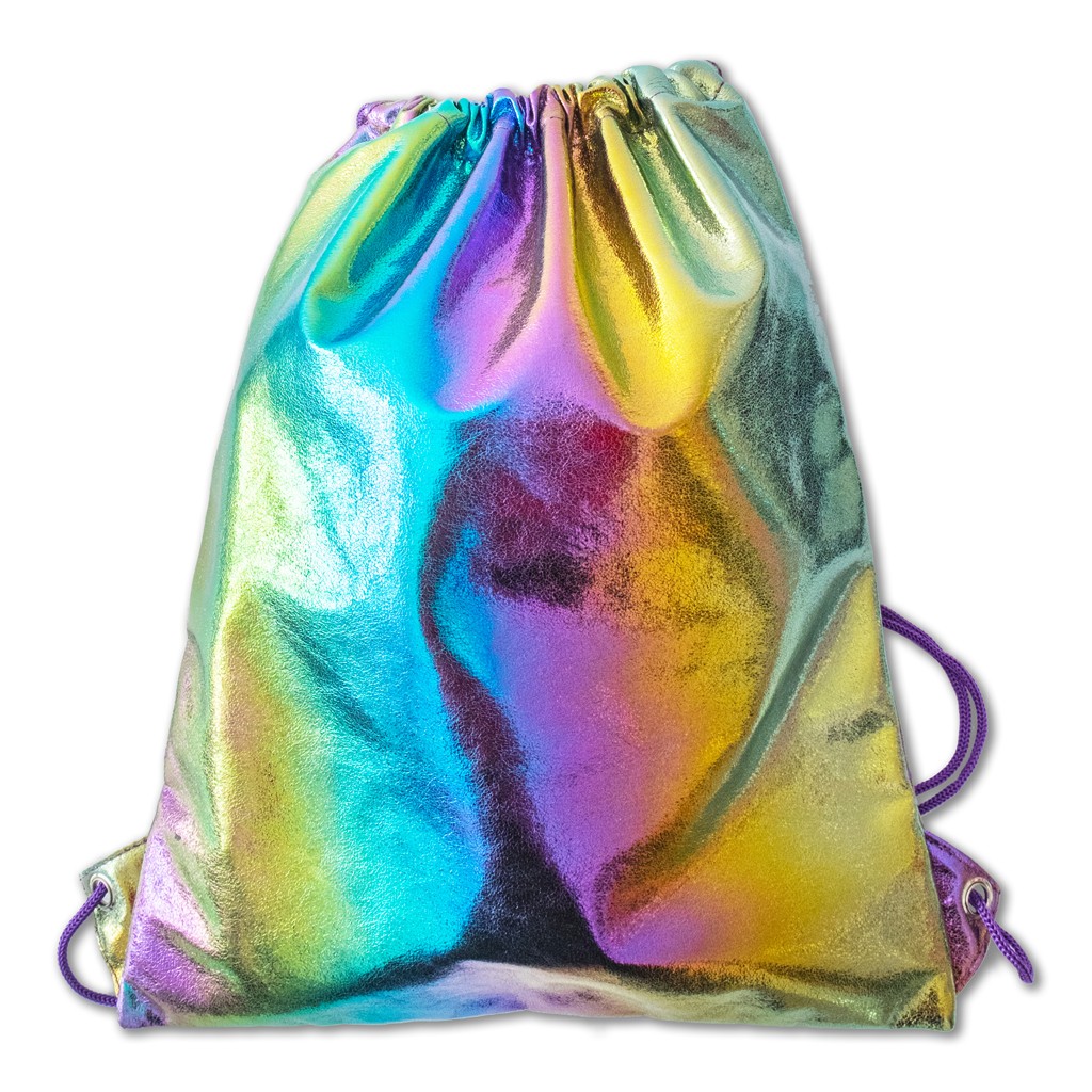 Mieniący się worek o żywych kolorach, z metalicznym połyskiem. Zmieści strój na basen, buty czy książki w formacie A4. Wykonany ze sztucznej skóry, materiał miły i przyjemny w dotyku. Worek jest ściągany sznurkami, solidnie wykonany, z podszewką w środku.