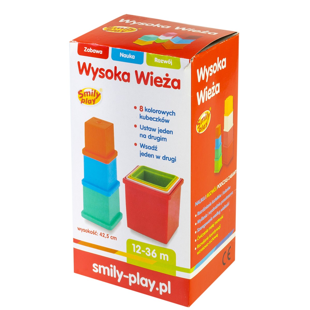 Wysoka Wieża to kreatywna zabawa rozwijająca zmysły dziecka. 8 kolorowych kubeczków nauczy malucha kolorów oraz literek, pojęcia większy-mniejszy, wyżej niżej.