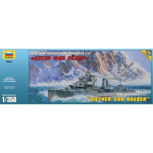 Strona główna Kolekcjonerskie modele plastikowe ZVEZDA German Destroyer Z-17 Diether Cena Netto: 65,28 zł. error_outline Produkt chwilowo niedostępny. Opis German Destroyer Z17 Diether Von Roeder. Zestaw zawiera plastikowy model okrętu do sklejenia.
