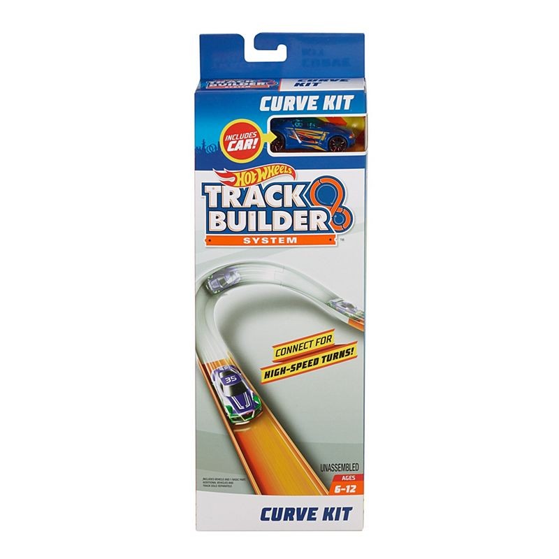 Każdy element zawiera dwie części pomarańczowego toru i samochód Hot Wheels!