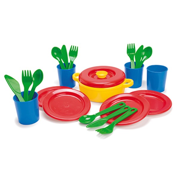 Strona główna Zabawy kreatywne zabawa w dom Zastawa stołowa w siatce Cena Netto: 23,12 zł. error_outline Produkt chwilowo niedostępny. Opis Zestaw zawiera 22 elementy, między innymi: duży garnek z pokrywką oraz 4 jednakowe kubeczki, 4 talerzyki i zestawy sztućców.