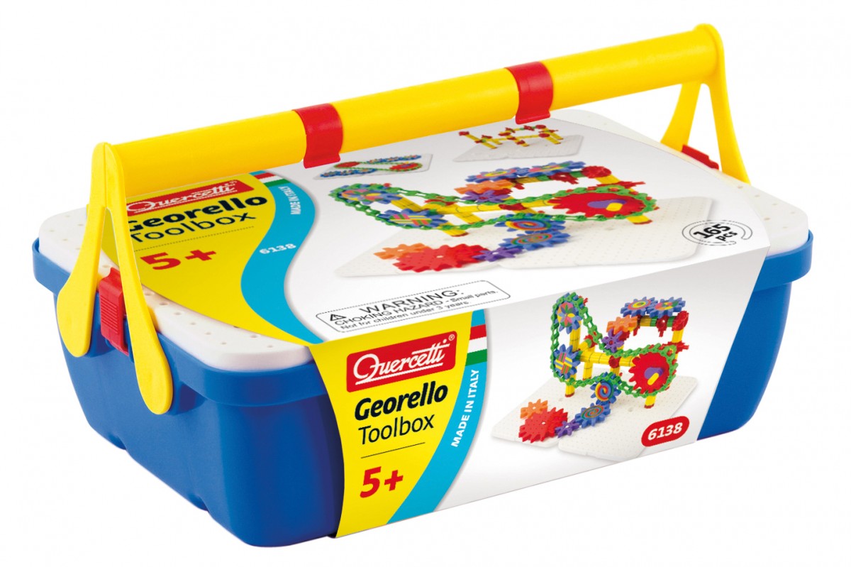 Quercetti zestaw konstrukcyjny Gorello Toolbox, to kreatywny zestaw, który pozwal dzieciom poznać proste zasady mechaniki.