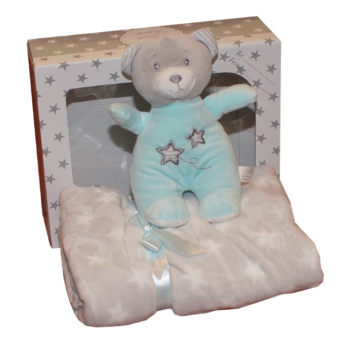 Zestaw New Baby grzechotka i kocyk, miętowy