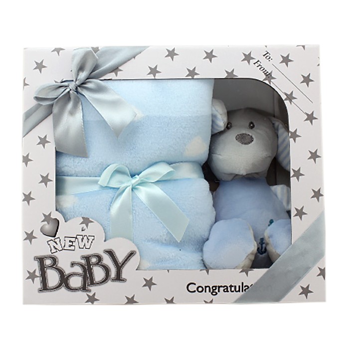 Zestaw New Baby grzechotką i kocykiem, niebieski