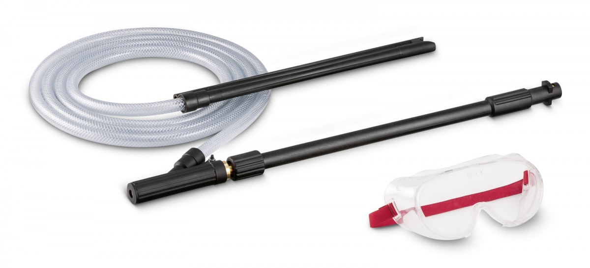 Zestaw do mokrego piaskowania usuwa rdzę, farbę oraz uporczywy brud za pomocą ścierniwa Kärcher. Przeznaczony do domowych urządzeń wysokociśnieniowych Kärcher klasy K2- K7.