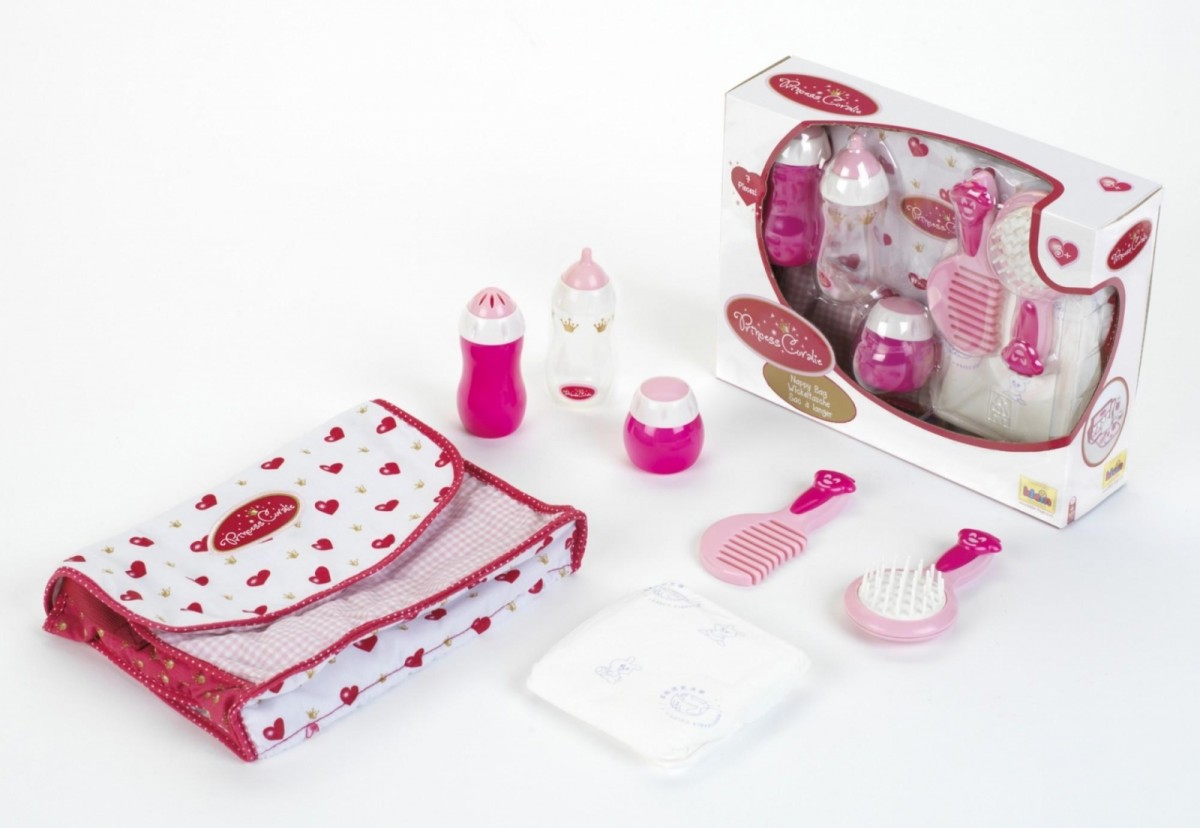 Zestaw do pielęgnacji lalki stworzony został na wzór używanych przez mamy niemowlaków toreb z akcesoriami niezbędnymi podczas wyjścia z dzieckiem.