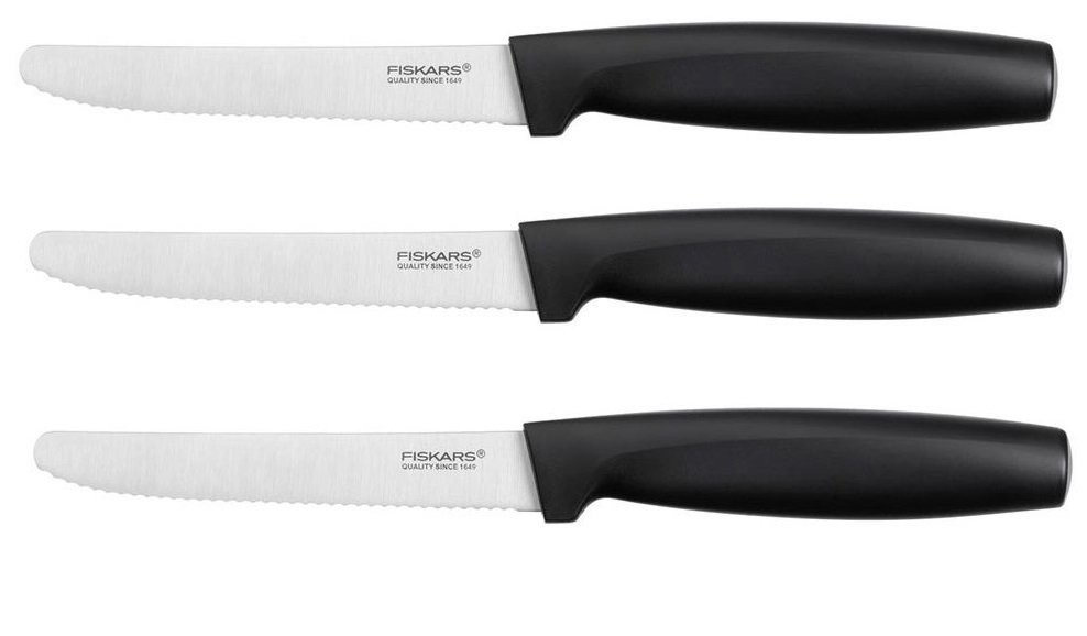 Noże Functional Form to jedna z najpopularniejszych linii produktów firmy Fiskars. Przy tworzeniu tej serii specjalną uwagę zwrócono na ergonomię, funkcjonalność i bezpieczeństwo codziennego użytkowania. Rękojeść Softouch® z osłoną na palce gwarantuje pewny, wygodny uchwyt, dzięki czemu nóż dobrze układa się w dłoni.
