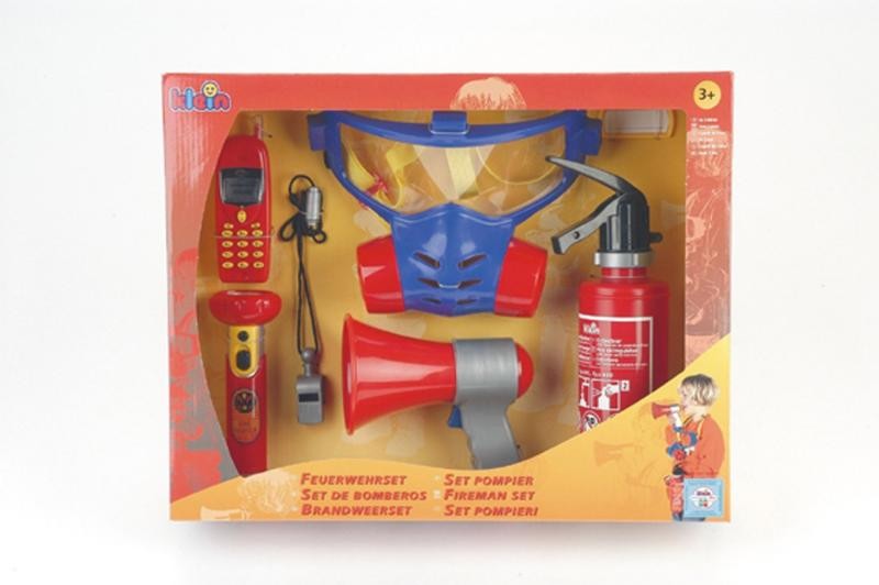 Cała seria zabawek firmy Klein zawiera zarówno czapki, hełmy, lizaki ostrzegawcze, czy pojedyncze gaśnice, jak i bogate zestawy zawierające kompletne wyposażenie policjanta czy strażaka.