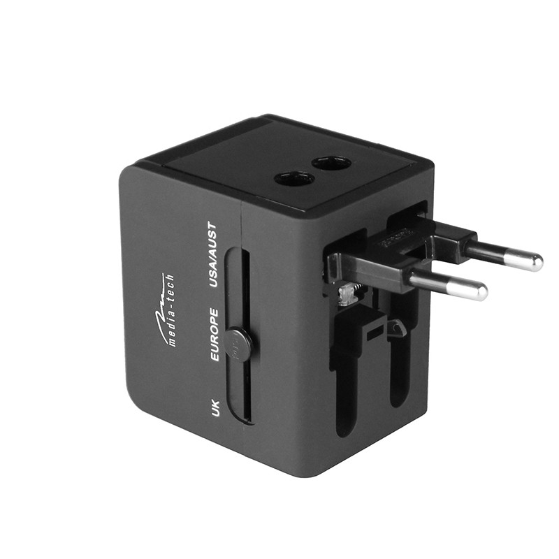 Urządzenie składa się z 3 wtyczek: UK, US, EU. Dodatkowo posiada podwójną ładowarkę USB 5V 2.1A.