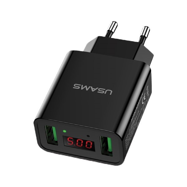 USAMS US-CC040 Dwu portowa ładowarka sieciowa USB z wyświetlaczem.